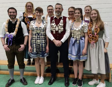 v. l.: Luftgewehr: Vizekönig Georg Lang, Brezenkönigin Evelyn Baab, Schützenkönigin Annika Richtmann Luftpisole: Vizekönig Jürgen Lechner, Pistolenkönig Matthias Fischer, Brezenkönigin Anja Lechner Schüler/Jugend: Jugendkönigin Linda Mayr, Vizekönigin Hanna Fernsemmer, Brezenkönigin Hanna Ehlich |